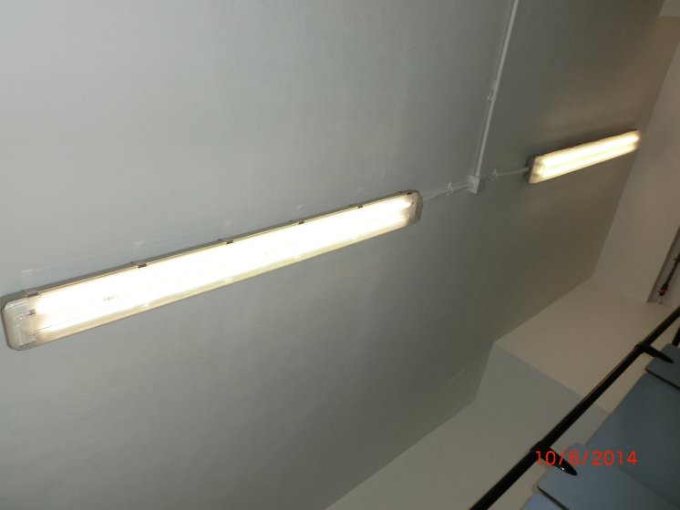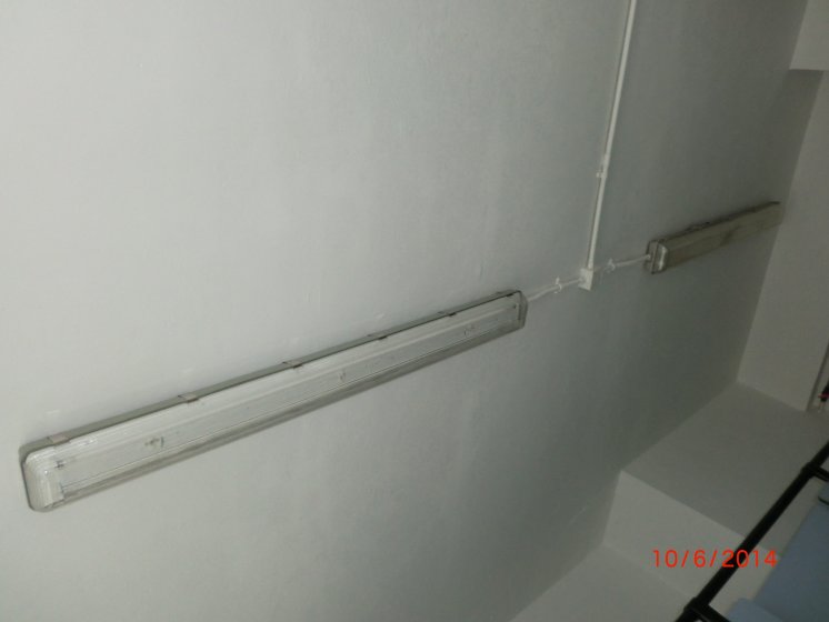 ![]() 在四樓男廁天花頂的兩套照明光管便是目標電器了。 |