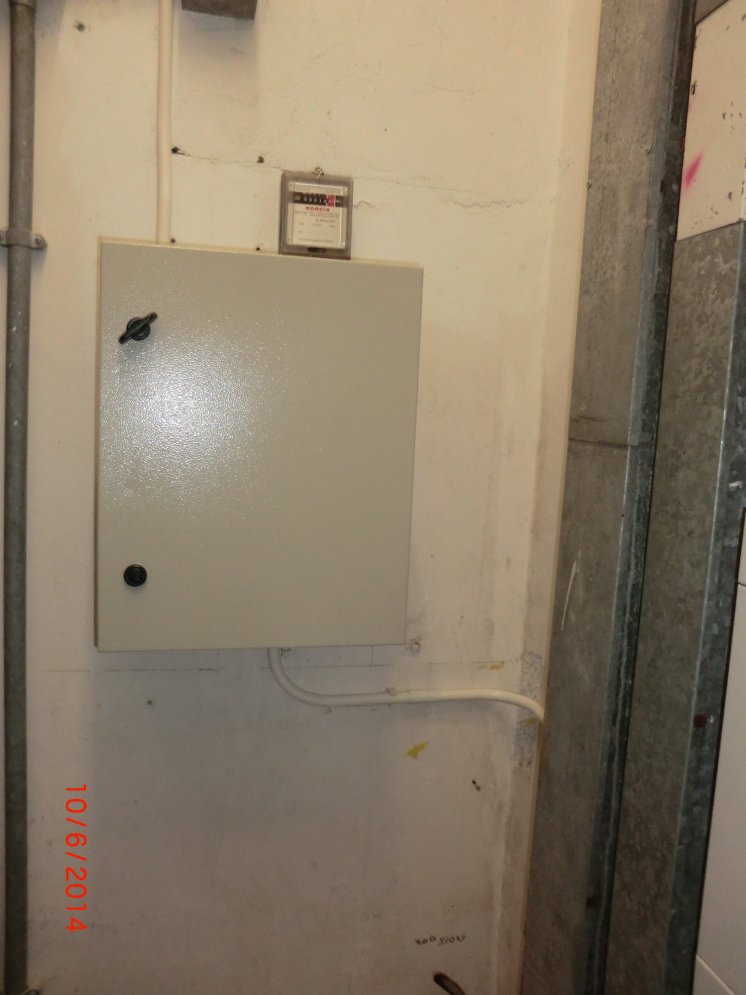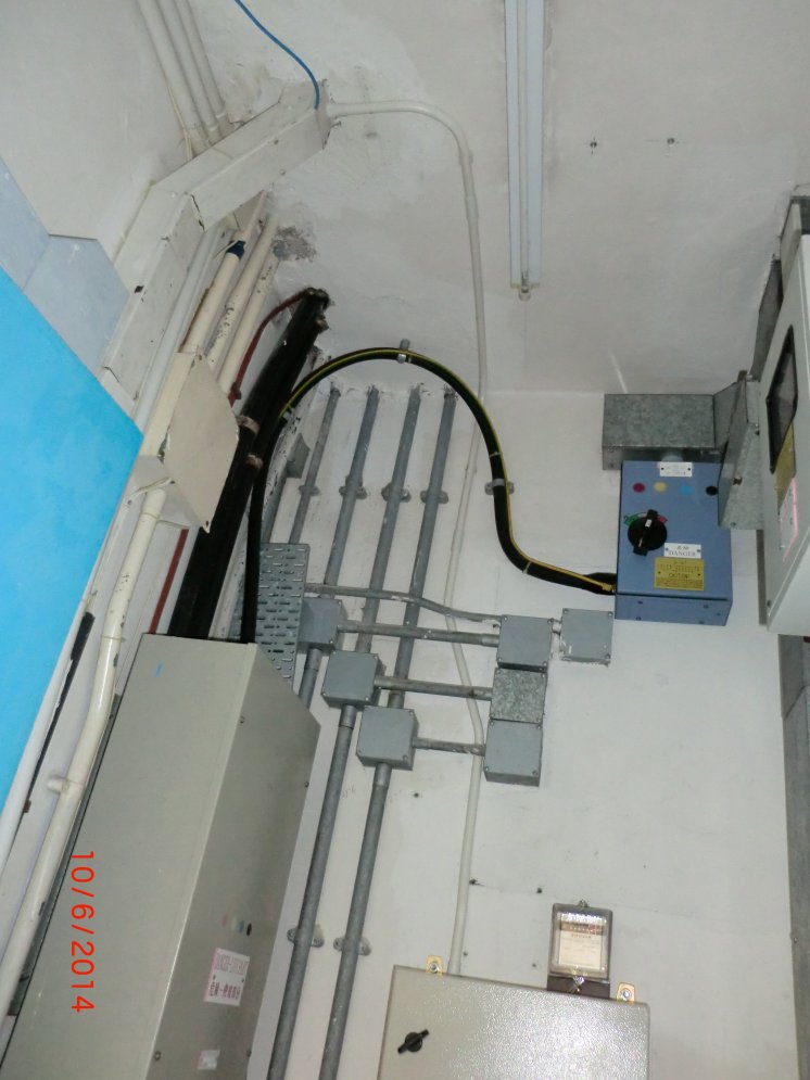 ![]() 經天台的低壓電線糟,把電力引到四樓電掣房內。 |